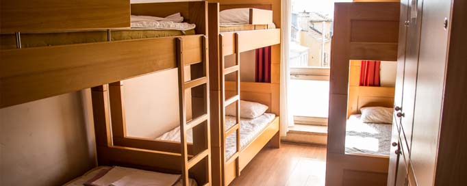 Hostels are a form of communal accommodation, where multiple guests will usually sleep in a shared room, with the guests effectively renting a bed. Bathroom and kitchen facilities are usually shared and hostels offer less privacy than hotels. Yet, they are usually significantly cheaper, making them a solid option for those with a low budget.