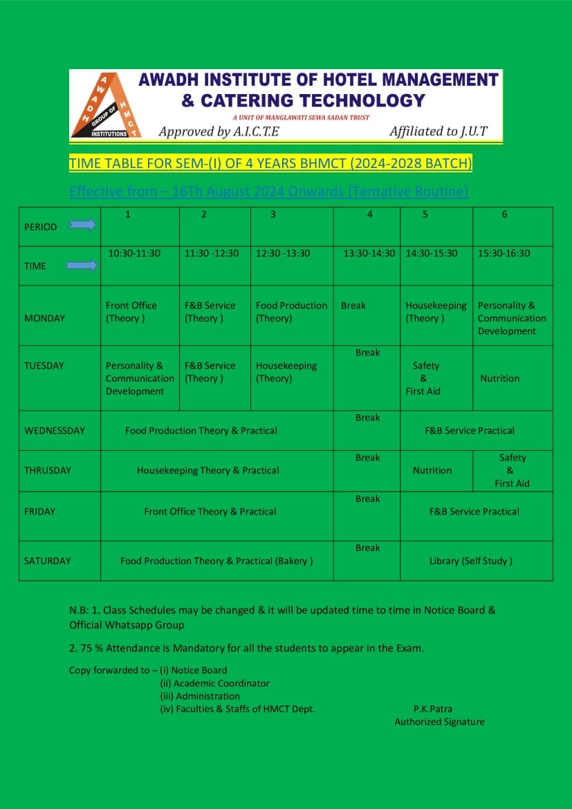 Time Table for Sem-I of Batch 2024-28